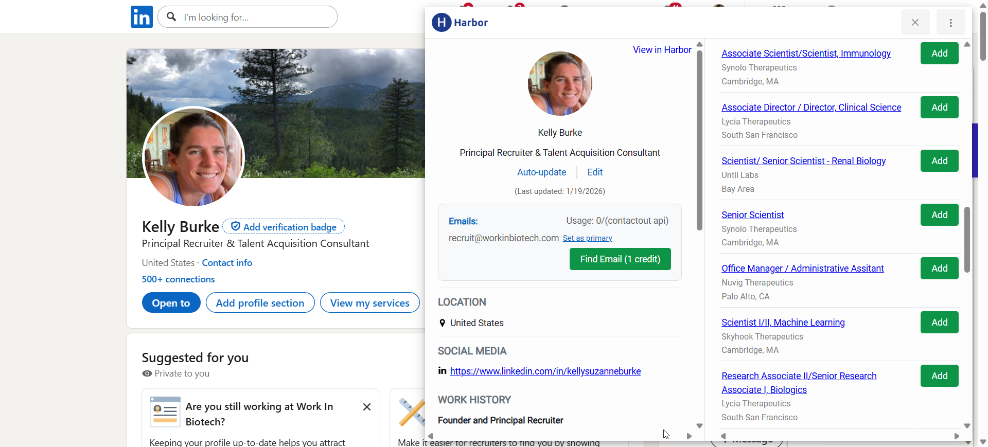 The Harbor Chrome extension makes sourcing on LinkedIn a breeze! It gathers all information about candidates, including email addresses, and even allows me to send outreach directly from the extension, saving tons of time. I also love that I can edit a candidate’s profile details directly from the extension, rather than taking an extra step to open the browser application.